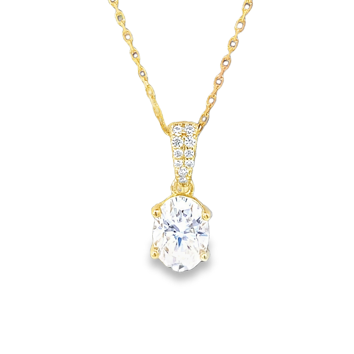 Silver Gold-Plated Moissanite 6mm x 8mm Oval Solitaire Pendant with 18" Chain