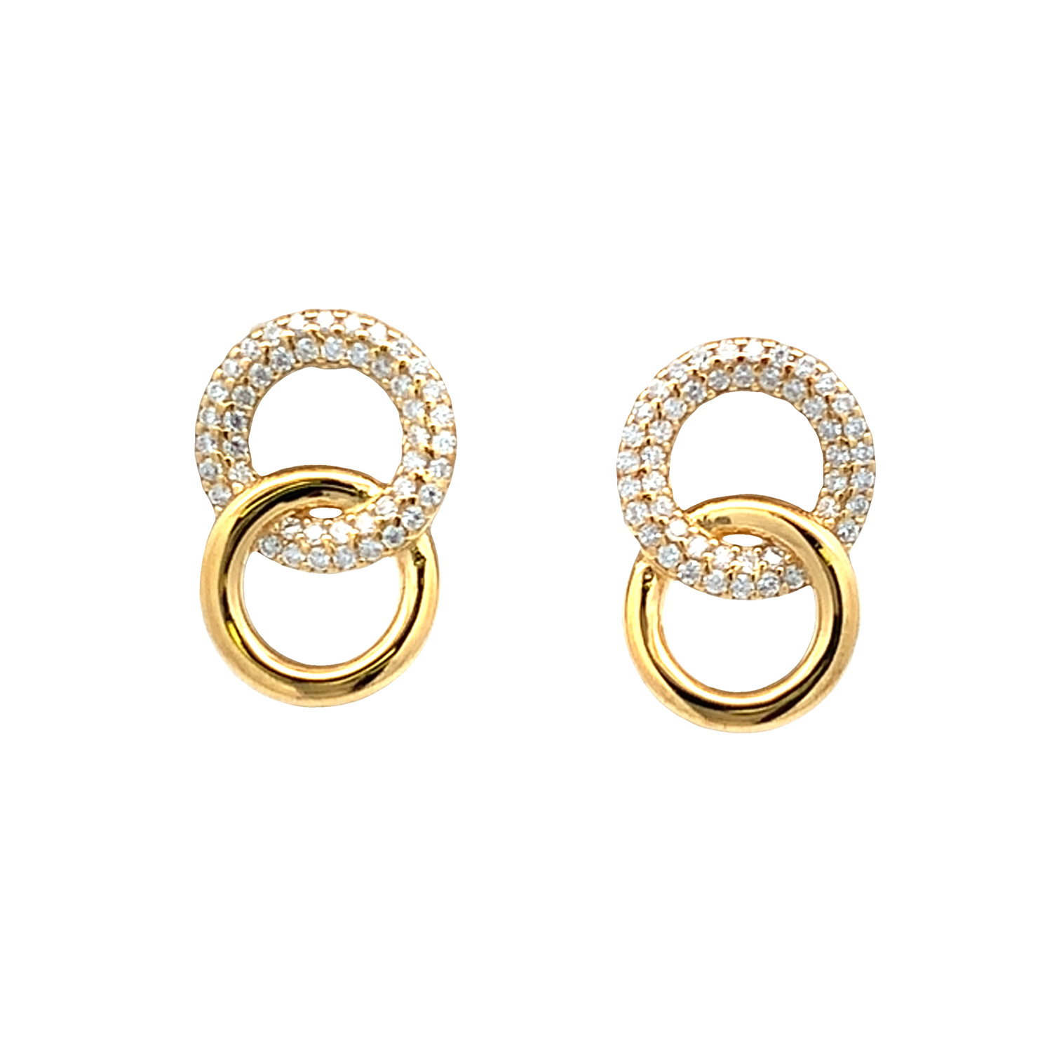 Silver Gold-Plated Moissanite Pave & Plain Double Circle Post Earrings