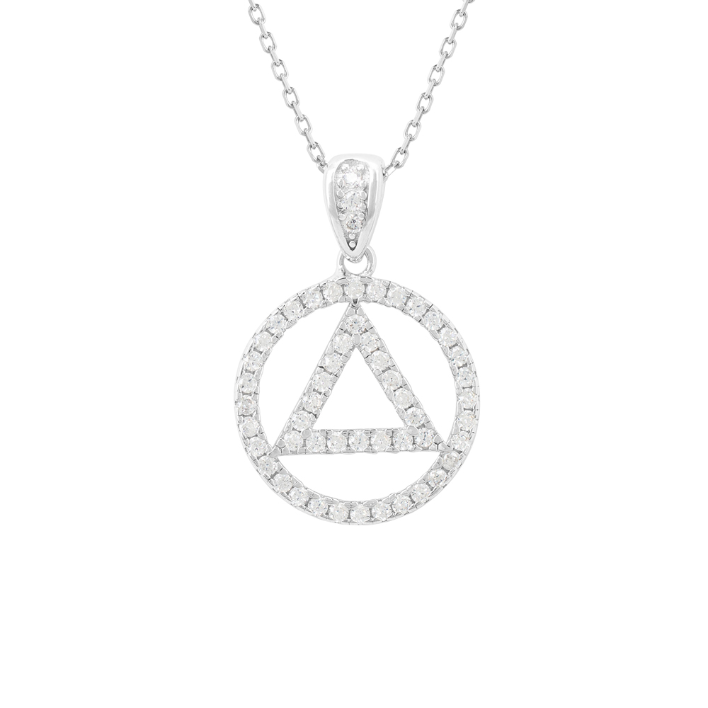 Silver AA / Recovery Pendant with Clear CZ Rhodium