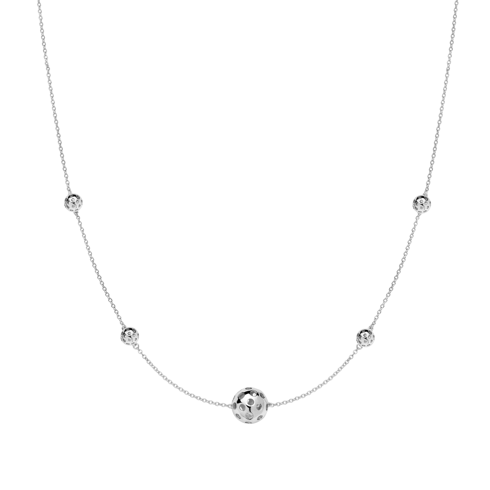 .925 Silver five Pickleball necklace 16"+3"ext all rhodium