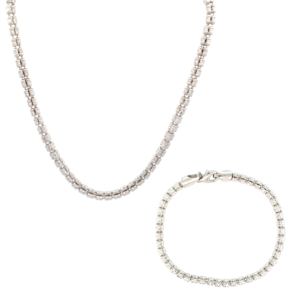 Silver Triple Row Ice Sparkling Necklace and Bracelet set