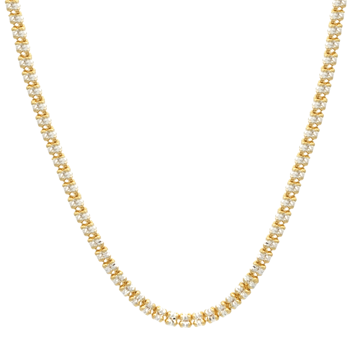 Silver Triple Row Ice Sparkling two-tone Gold-plated Necklace 18"
