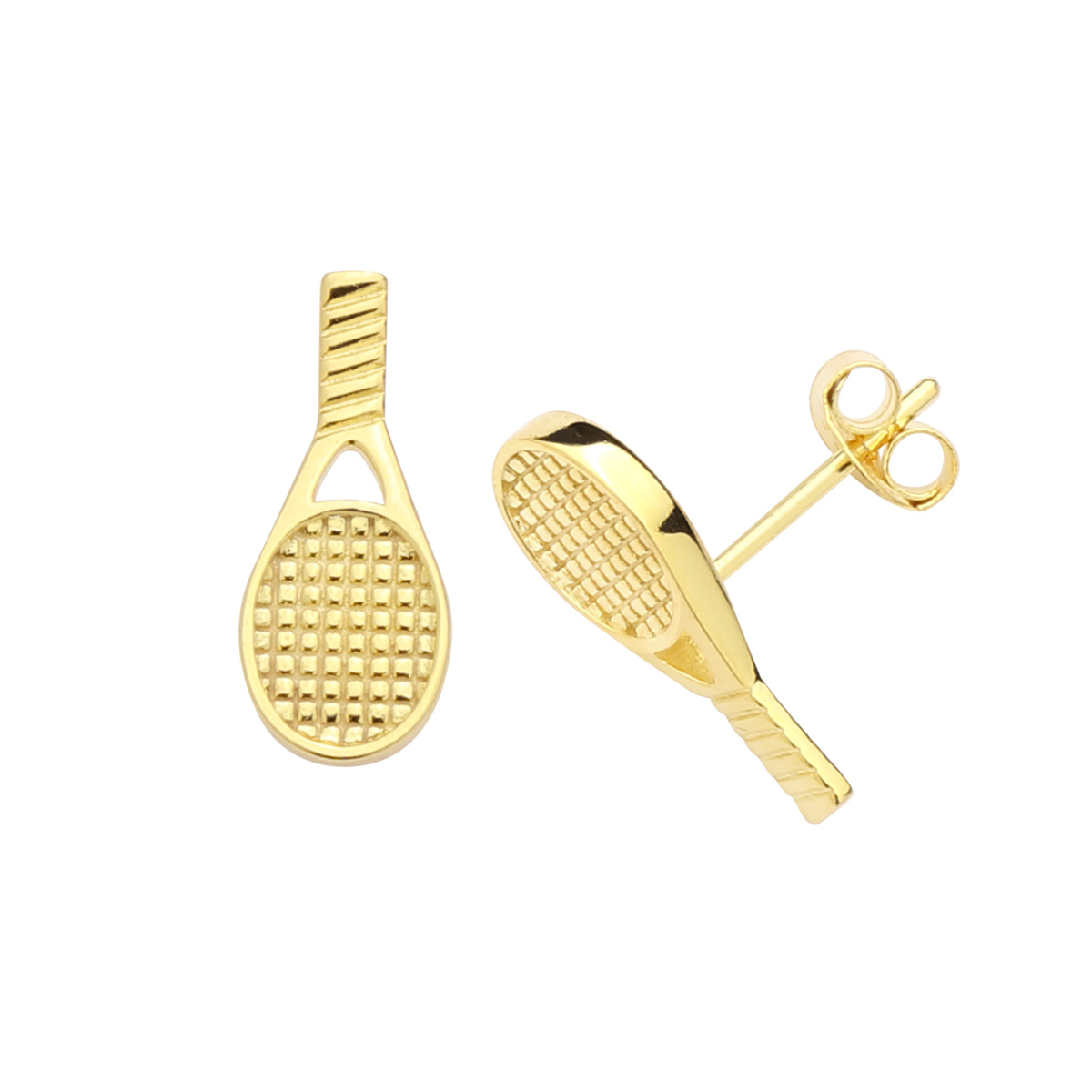 Silver Single Tennis Racket Gold-Plated Post Earrings