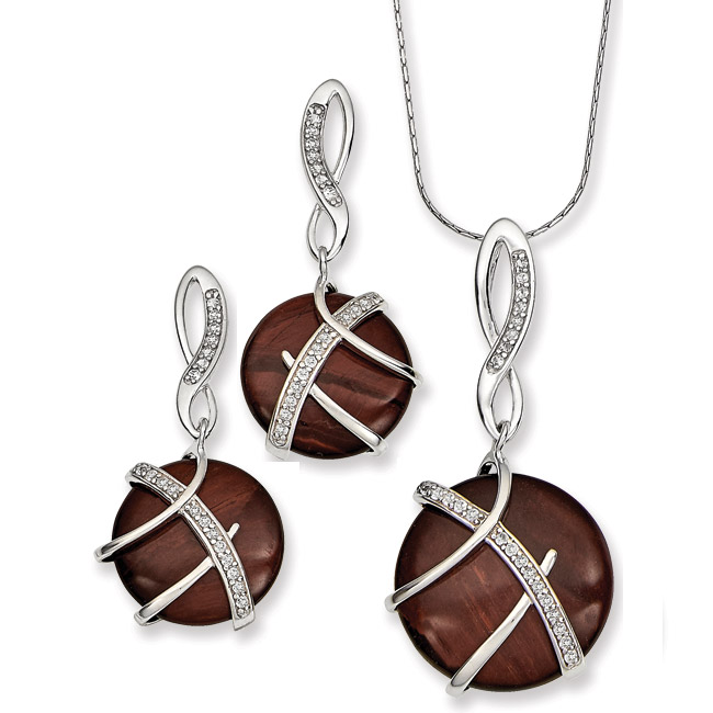 Silver Abstract Dangle Red Tiger Eye Set 6120