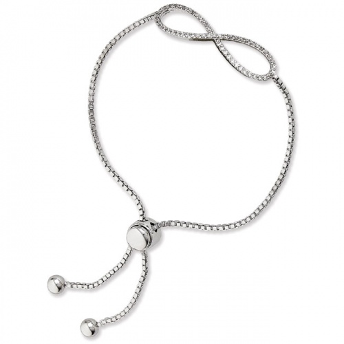 .925 Silver Rhodium with White Topaz Figure 8 adjustable lariat bracelet 10.5"