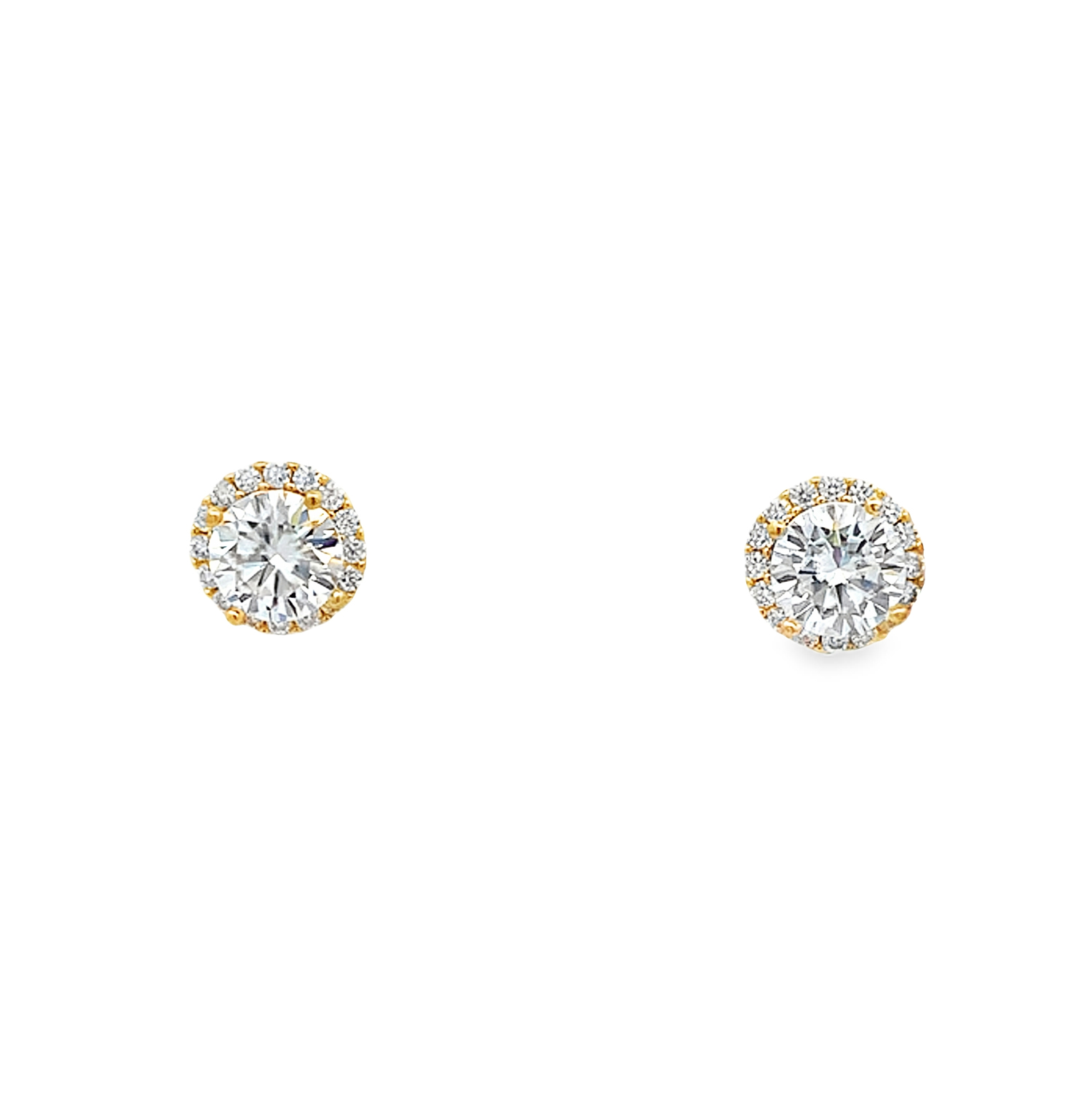 .925 Silver Gold-plated Moissanite halo round post earrings 3.80 CTW VVSD Color