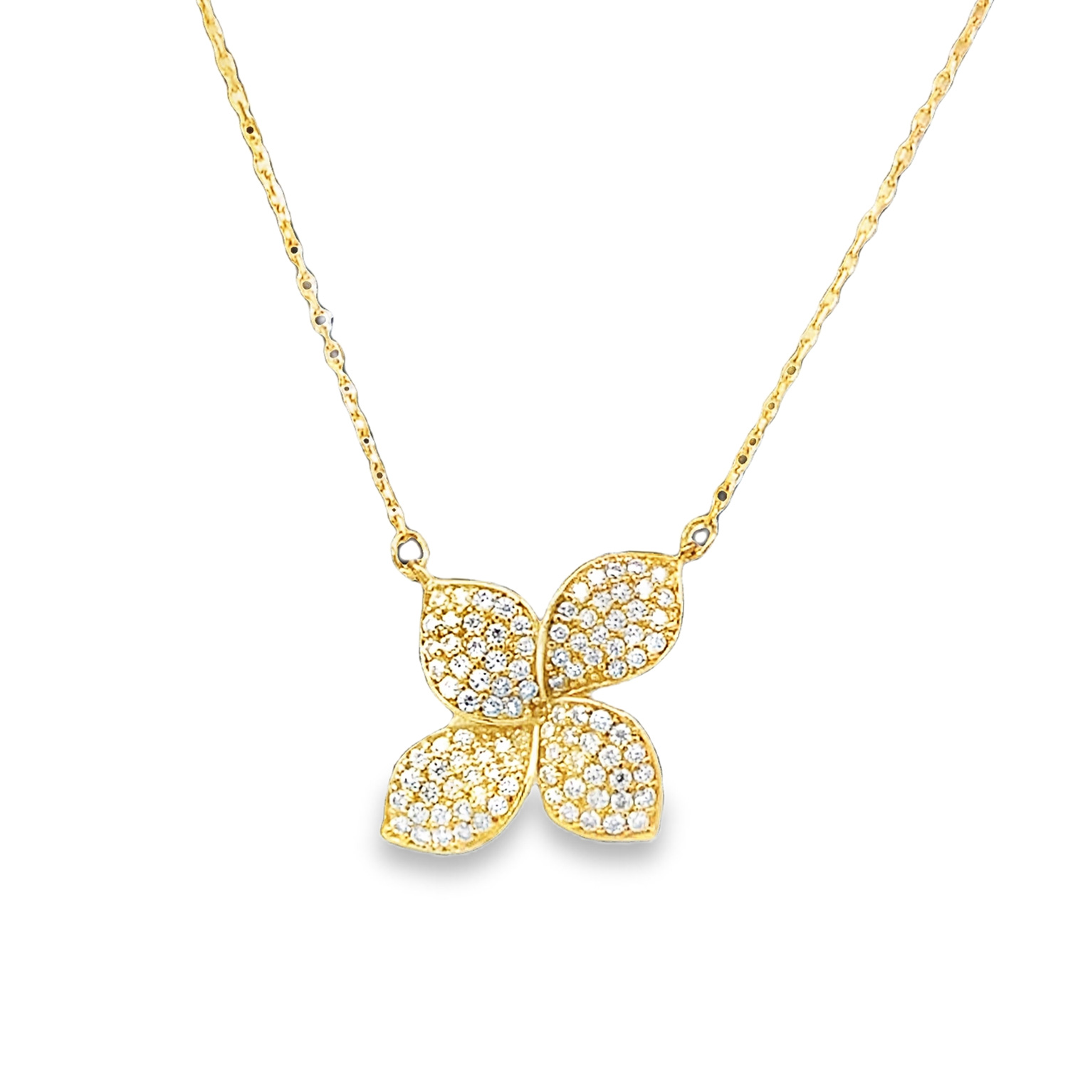 Silver Gold-Plated Moissanite Pedal Flower Design Necklace