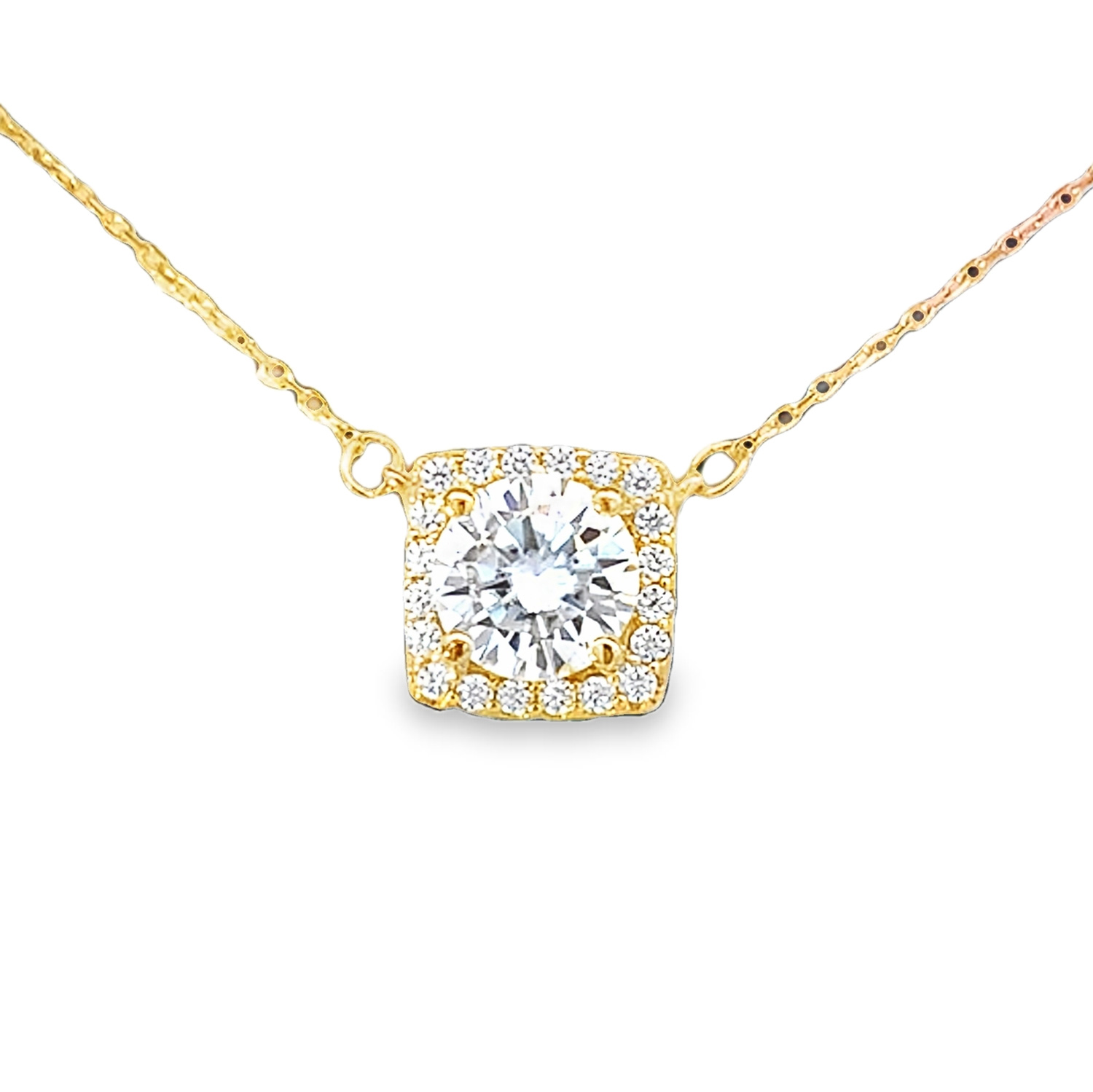 Silver Gold-Plated Moissanite Round on Square Halo Necklace
