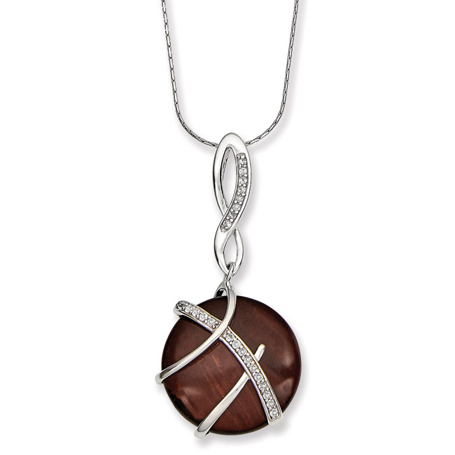 Silver Red Tiger Eye and Topaz Pendant