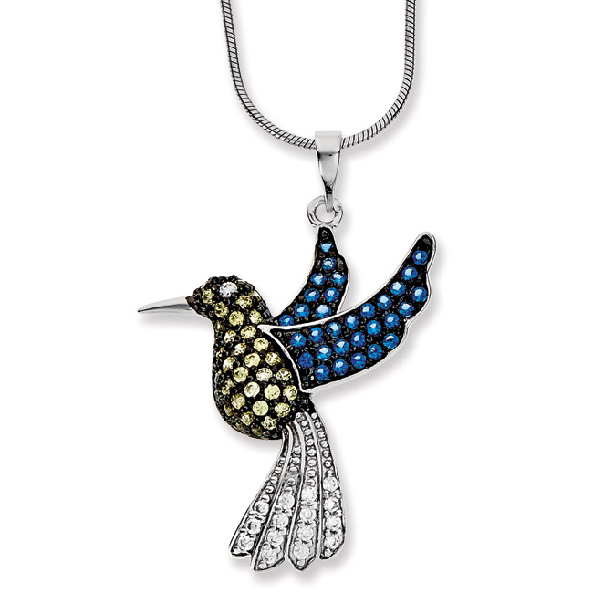 Silver Humming Bird Blue & Yellow CZ Pendant