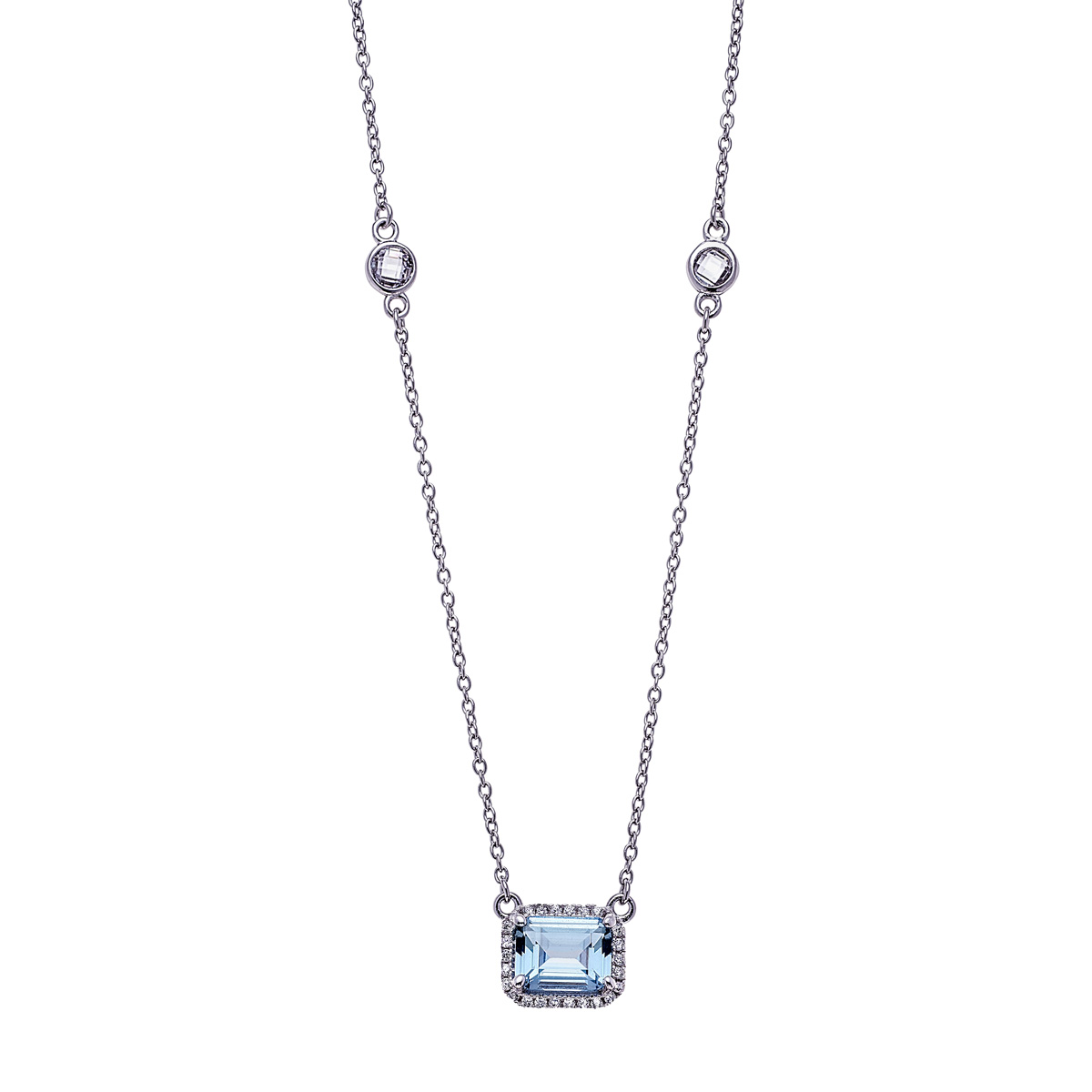 .925 Silver Clear CZ's Halo Design with Large Aquamarine Spinel Center Necklace 16"+3" Extender March