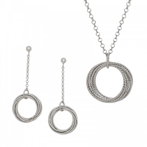 Silver Diamond Cut Love Knot Design Necklace and Earring Set