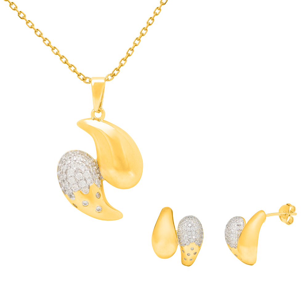 Silver Double Swirl Gold-Plated with Clear CZ Pendant and Earring Set