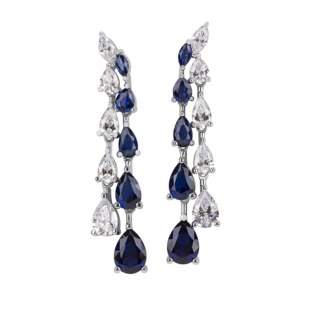 Silver Graduated Teardrop Triple A -Quality Clear CZ and Sapphire Nano Design Earring
