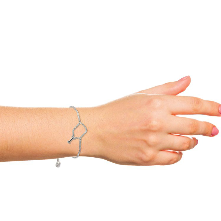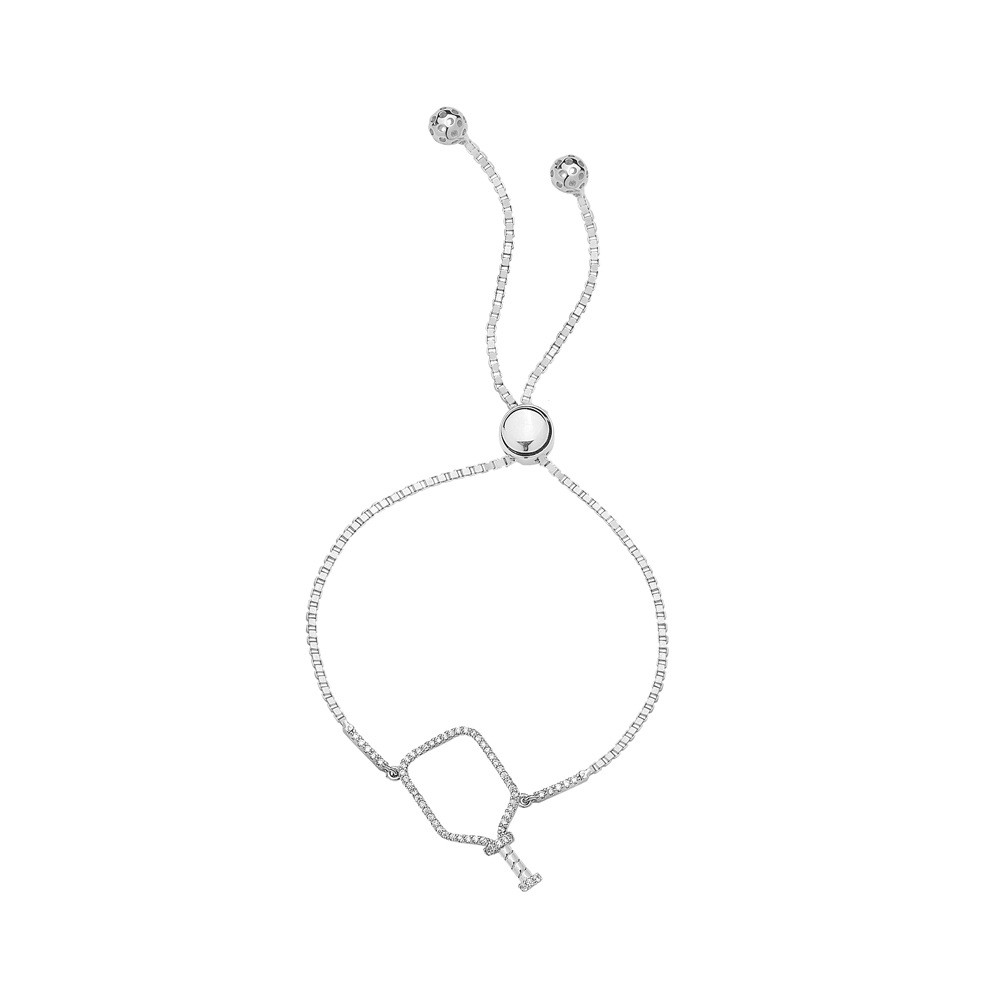 Silver Open Pickleball Paddle with CZ All Rhodium Lariat Bracelet