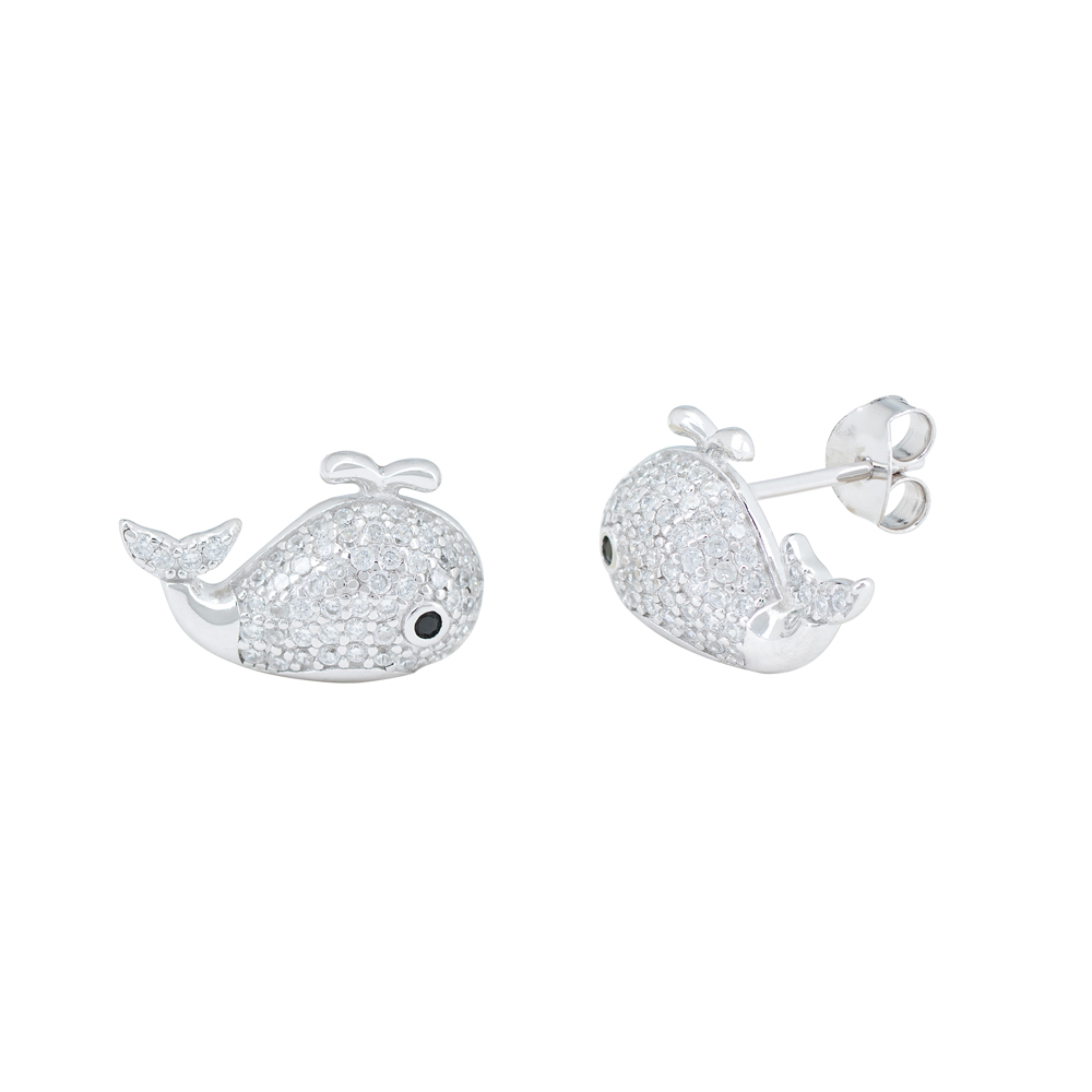 Silver Pave Whale with Clear CZ Necklace and Earring Set