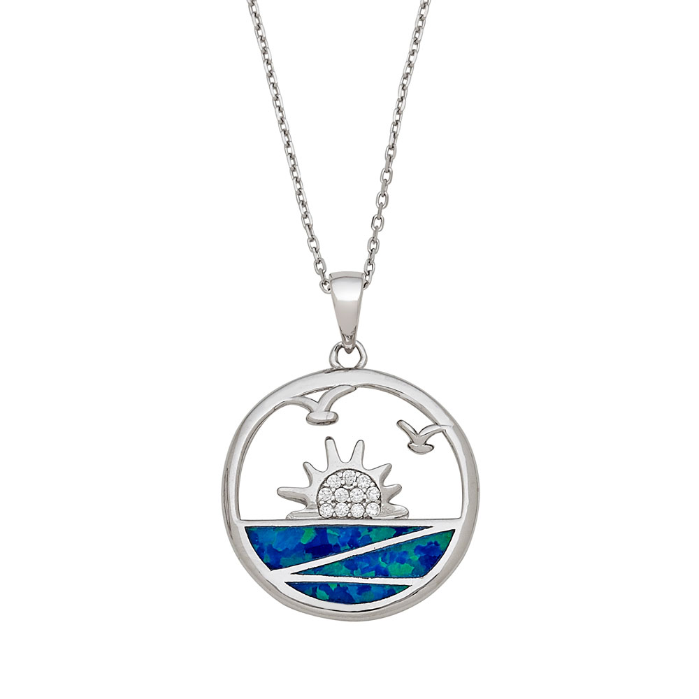 .925 Silver Sunset Pendant Lab Opal with CZs