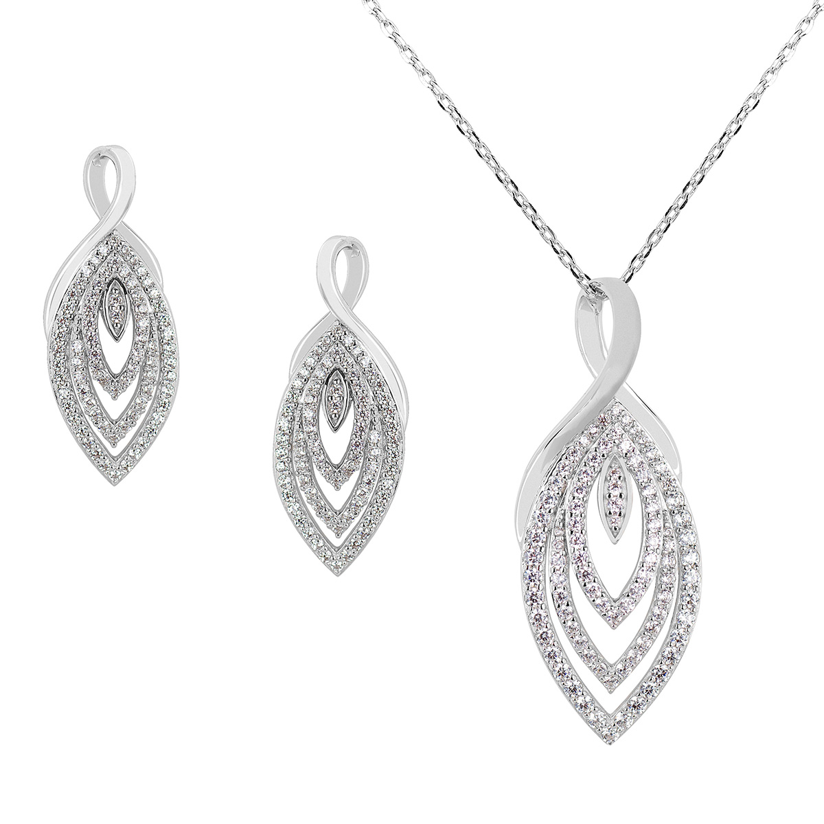 .925 Silver triple marquise shape bands with cz's, center plain with cz's pendant 16"+2" ext and post earrings set