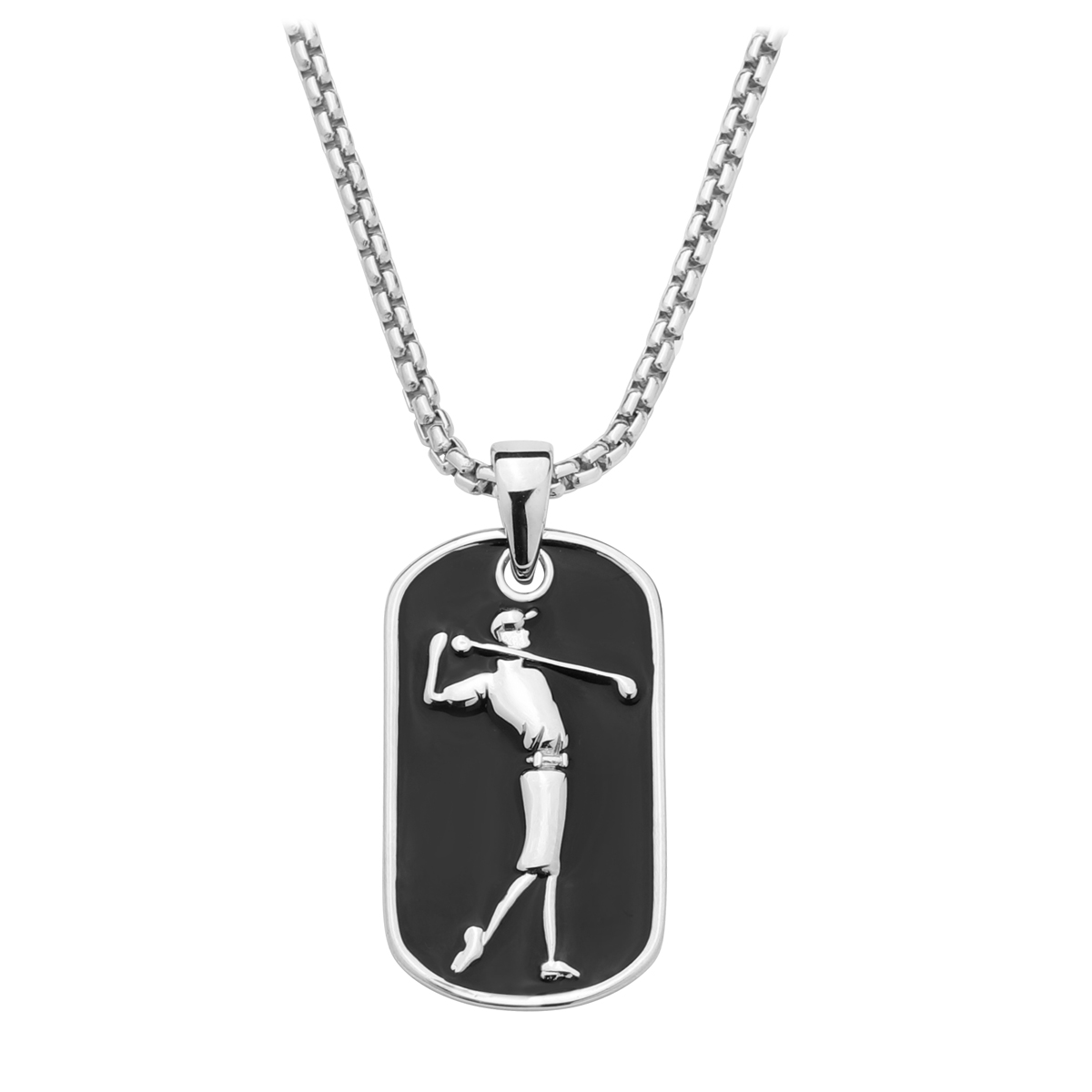 BRASS Men's Golf Dog Tag Golfer's Swing black enamel necklace 21+2" extender (this style is not silver)